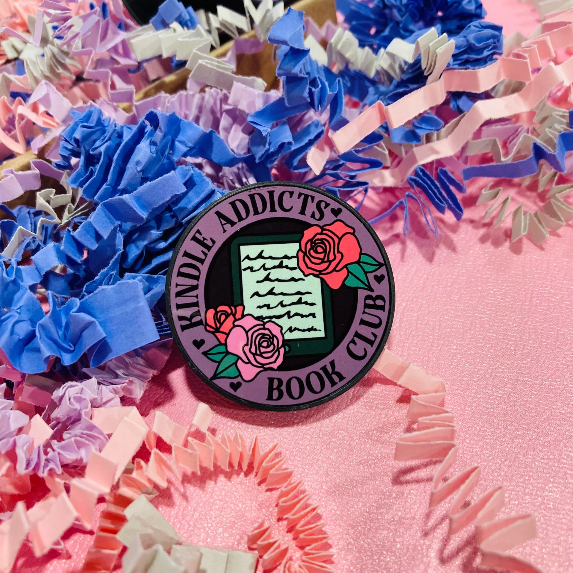 This sleek, matte black Kindle grip features a durable metal disk with high-quality sublimation printing, offering both style and functionality. The strong 3M adhesive backing ensures a secure hold—simply peel and stick directly to your device.